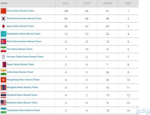 ஆசிய விளையாட்டுப் போட்டியில் பதக்கம் பட்டியல் நிலவரம்