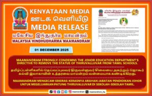 கோலாலம்பூர், 02 டிசம்பர் 2025 : தமிழ்ப்பள்ளிகளில் தெய்வப்புலவர் திருவள்ளுவர் சிலையை அகற்றும் ஜொகூர் கல்வி …