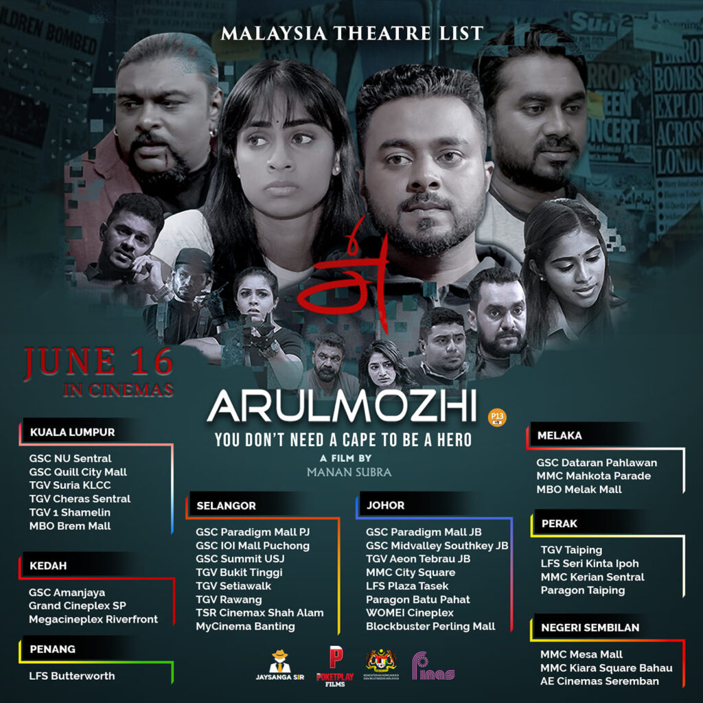 சங்கபாலன் தயாரிப்பில் மன்னன் சுப்ரா இயக்கத்தில் உருவான “அருள்மொழி” திரைப்படம் 16 ஜூன் 2022 அன்று மலேசியா முழுவதும் சுமார் 36 திரையரங்குகளில் வெளியாகி உள்ளது. பாக்கட்பிளே பிலிம்ஸ் வெளியிட்டுள்ள இந்த திரைப்படத்தில் சங்கபாலன், விடியா, பாஷினி, ஷாமினி, மகேன் விகடகவி, பிரகாஷ், அகோந்திரன், ஆல்வின் மாட்சின், லியனா, மகேஸ்வரன், ரமிதா ஸ்ரீ, கோகிலா, மோகன ராஜ், சரன் ராவ் மற்றும் பலர் நடித்துள்ளனர். ராமேஸ்வரன் கேமரா, பின்னணி இசை யாலினி. படம் வெற்றி பெற வாழ்த்துக்கள்.