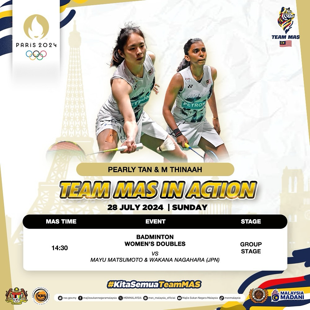 பாரிஸில் நடைபெறும் ஒலிம்பிக் போட்டியில் 28 ஜூலை மலேசிய விளையாட்டு வீரர்கள் பங்குபெறும் போட்டிகளின் விவரங்கள். அனைவருக்கும் நமது வாழ்த்துக்கள்.