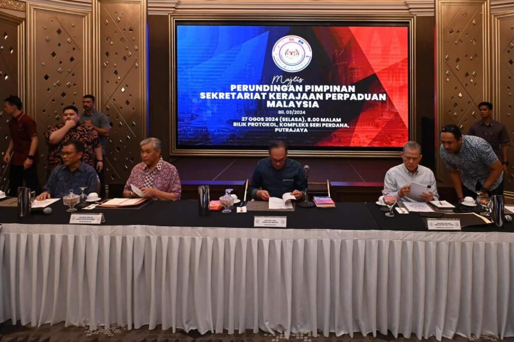 புத்ராஜெயா, 28-08-2024 : புத்ராஜெயா ஸ்ரீ பெர்டானாவில் 27 ஆகஸ்ட் 2024 அன்று நடைபெற்ற மலேசிய ஒற்றுமை அரசாங்கத் தலைமைத்துவ ஆலோசனைக் குழுக் கூட்டம் பின்வருமாறு பல தீர்மானங்களைச் செய்ததுள்ளது: