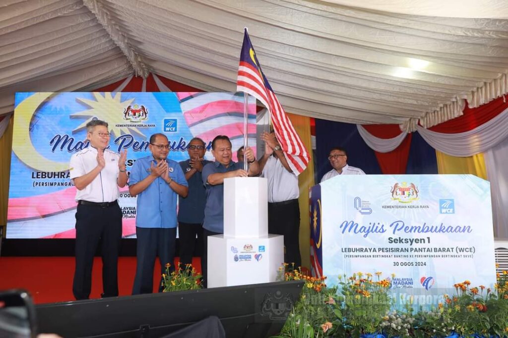 பந்திங், சிலாங்கூர் – 1 செப்டம்பர் 2024 : பொதுப்பணித்துறை அமைச்சர் டத்தோ ஸ்ரீ அலெக்சாண்டர் நந்தா லிங்கி 30/08/2024 அன்று பிரிவு 1,மேற்கு கடற்கரை நெடுஞ்சலையைத் திறந்து வைத்தார்.