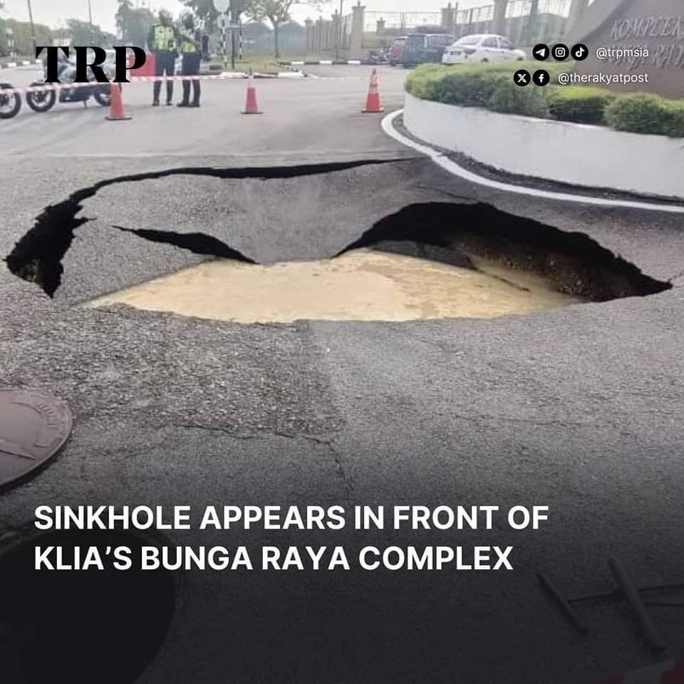 செப்பாங், 25/09/2024 : இன்று கோலாலம்பூர் சர்வதேச விமான நிலையத்தின் (KLIA) புங்கா ராய வளாகத்தின் நுழைவாயிலுக்கு அருகில் 5 மீ அகலம், ஒரு மீட்டர் ஆழம் மற்றும் 4 மீ நீளம் கொண்ட ஒரு புதைக்குழி தோன்றியுள்ளது.