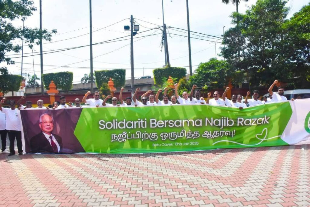 கோலாலம்பூர், 06/01/2025 : ம.இ.கா தேசியத் துணைத் தலைவரும் தாப்பா நாடாளுமன்ற உறுப்பினருமான டத்தோஶ்ரீ எம். சரவணன், முன்னாள் பிரதமர் டத்தோஶ்ரீ நஜிப் துன் ரசாக்கிற்கு ஆதரவாக ஒற்றுமை கூட்டத்தை 06/01/2025 அன்று பத்து மலையில் வழிநடத்தினார். முன்னதாக டத்தோ ஸ்ரீ நஜிப்பிற்கு நியாயம் கிடைக்க வேண்டும் என கூட்டுப் பிரார்த்த்நை நடைபெற்றது. நிகழ்ச்சியில் தேசிய ம.இ.கா உயர்மட்ட தலைவர்கள், மாநில தலைவர்கள், தொகுதித் தலைவர்கள், கிளை தலைவர்கள், இளைஞர் அணி, மகளிர் அணி, புத்ரா, புத்திரி மற்றும் ம.இ.கா பணிப்படை உறுப்பினர்கள் என அனைத்து மாநிலங்களிலிருந்தும் 3000க்கும் மேற்பட்டபர்கள் பங்கேற்றனர்.