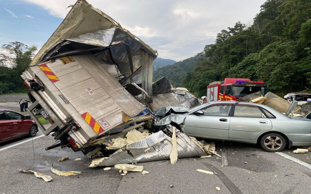 அதோடு, 29 வயதுடைய லாரி உதவியாளர் ஒருவரும் காயங்களுக்கு ஆளான வேளையில், இதர வாகனங்களின் ஓட்டுநர்களும் பயணிகளும் உயிர்த் தப்பினர்.