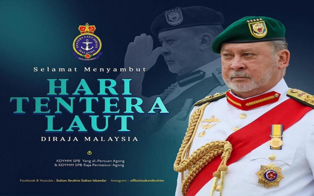 கோலாலம்பூர், 27/04/2025 : அரச மலேசிய கடற்படையின் 91-ஆம் நிறைவாண்டை முன்னிட்டு, அதன் அனைத்து உறுப்பினர்கள், பணி ஓய்வுப் பெற்றவர்கள் உட்பட அப்படையில் அர்ப்பணிப்பு உணர்வுடன் பணியாற்றிய அனைவருக்கும் மாட்சிமைத் தங்கிய மாமன்னர் சுல்தான் இப்ராஹிம் தமது வாழ்த்துக்களைத் தெரிவித்துக் கொண்டார்.