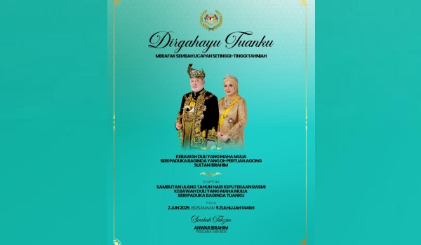 கோலாலம்பூர், 02/06/2025 : யாங் டி-பெர்துவான் அகோங், சுல்தான் இப்ராஹிமுக்கு இன்று அவரது மாட்சிமையின் அதிகாரப்பூர்வ பிறந்தநாள் கொண்டாட்டத்துடன் இணைந்து பிரதமர் டத்தோஸ்ரீ அன்வார் இப்ராகிம் தனது வாழ்த்துகளைத் தெரிவித்தார்.