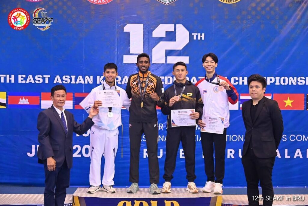 புரூணை தருஸ்ஸலாம், 20 ஜூன் 2025 : புரூணையில் நடைபெற்ற 12வது தென்கிழக்காசிய கராத்தே சாம்பியன்ஷிப் போட்டியில், மலேசியா அணியினர் பல்வேறு பிரிவுகளில் சிறப்பாக பங்கேற்று பல பதக்கங்களை கைப்பற்றி, நாட்டின் பெருமையை உயர்த்தினர்.