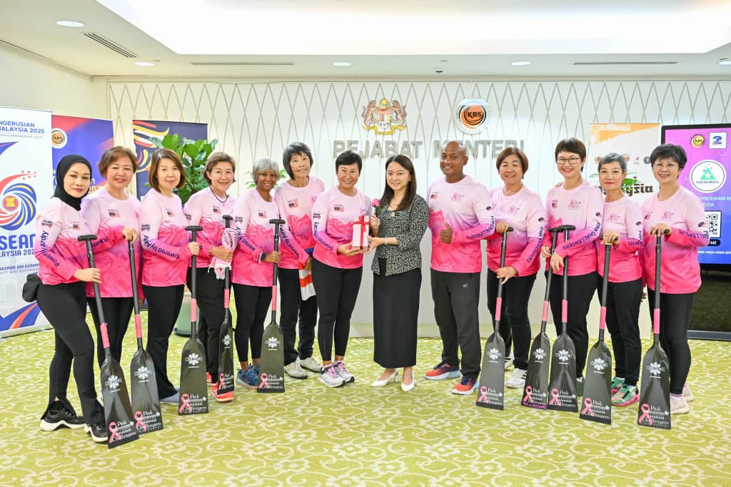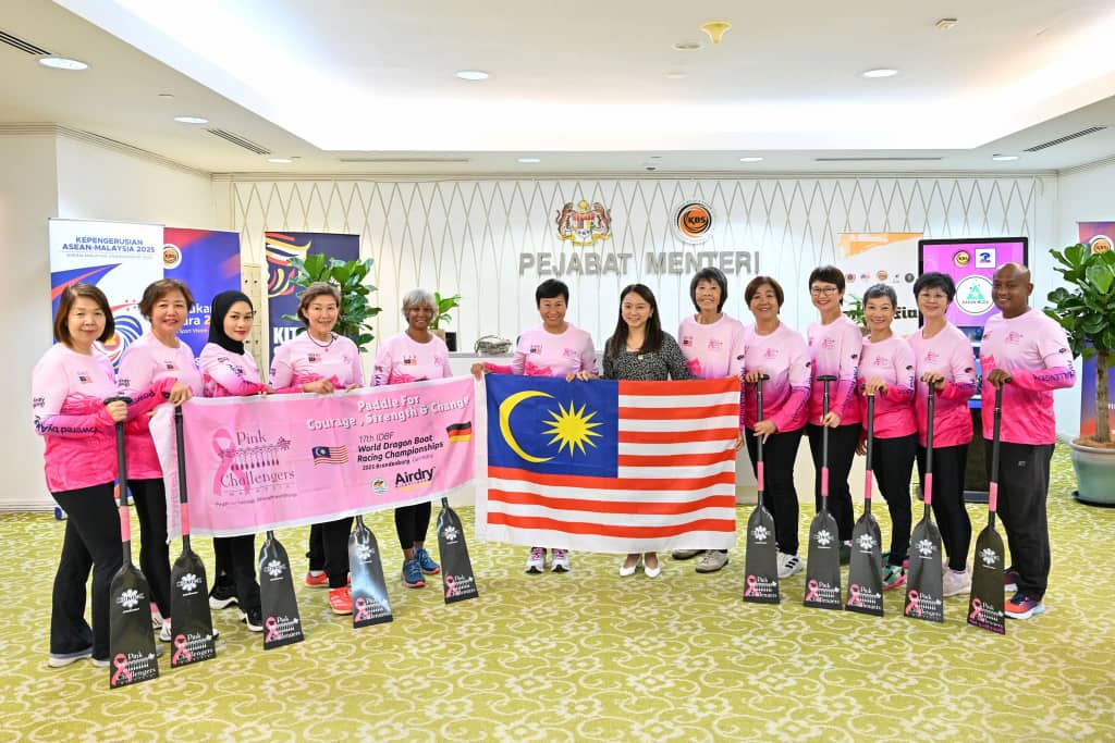 கோலாலம்பூர், 03 ஜூலை 2025 : மலேசியாவைச் சேர்ந்த 12 பெண்களுடன் கூடிய மார்பக புற்றுநோய் பேட்லர் (Breast Cancer Paddlers) குழுவிற்கு, ஜேர்மனியில் விரைவில் நடைபெறவுள்ள 17வது IDBF உலக டிராகன் போட் போட்டியில் பங்கேற்பதற்காக, மலேசியக் கொடியை (Jalur Gemilang) இளைஞர் மற்றும் விளையாட்டு துறை அமைச்சர் ஹன்னா யியோ பெருமையுடன் ஒப்படைத்தார்.