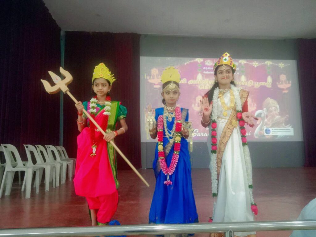 மந்திரங்கள் ஓத யாக பூஜை நடைபெற்றது. கொலு வைக்கப்பட்டு அதற்கும் பூஜை நடைபெற்றது. தலைமை ஆசிரியர், ஆசிரியர்கள் மற்றவர்கள் மாணவர்கள் கலந்து கொண்ட இந்த பூஜையில் பூஜைக்கு பிறகு உணவு வழங்கப்பட்டது. சரஸ்வதி பூஜைக்கு உணவுகள் வழங்கிய ‘முத்தையாஸ் கேஷ் & கேரி’, திரு.வாசுதேவன் குடும்பத்தாருக்கு மனமார்ந்த நன்றிகள் தெரிவிக்கப்பட்டது.