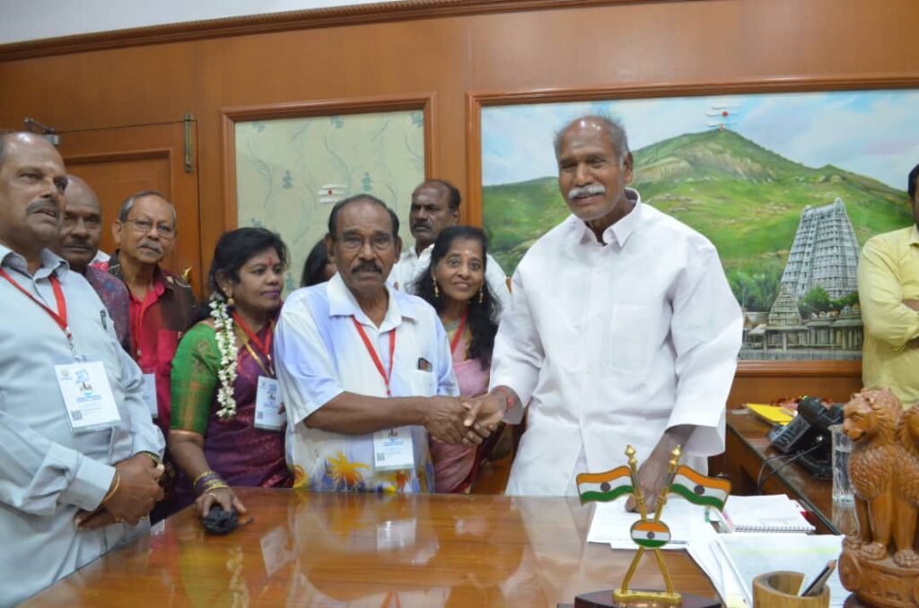 மலேசியத் தமிழர் சங்க அறங்காவலர் திரு. தங்கவேலு, தேசியத் தலைவர் திரு. பரமசிவம் மருதை, தேசியத் துணைத் தலைவர் திரு. செல்வகுமரன், தேசிய உதவித் தலைவர் திரு. ஆறுமுகம் மற்றும் தேசியப் பொருளாளர் திரு. பத்துமலை இராமலிங்கம் ஆகியோர் மாண்புமிகு முதலமைச்சருக்கு பொன்னாடை போர்த்தி மலர் கொத்து வழங்கி மரியாதை செலுத்தி தங்கள் அன்பை தெரியப்படுத்தினர். மேலும் பத்துமலை முருகனின் திருவுருவச் சிலை ஒன்றினை முதலமைச்சர் அவர்களுக்கு நினைவுப் பரிசாக வழங்கினர். இந்த சந்திப்பின் போது வந்திருந்த குழுவினர் அனைவருடனும் புதுச்சேரி முதலமைச்சர் மிகவும் பணிவன்புடன் உரையாடி அனவருடனும் புகைப்படம் எடுத்துக் கொண்டார்.