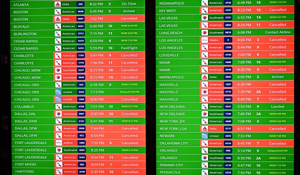 சனிக்கிழமை 3,898 ரத்துசெய்தல்கள் பதிவாகியுள்ளதாக FlightAware தரவு காட்டுகிறது, ஞாயிற்றுக்கிழமை மேலும் 8,822 ரத்துசெய்யப்படும் என்றும் திங்கட்கிழமை கூடுதலாக 1,549 ரத்துசெய்யப்படும் என்றும் எதிர்பார்க்கப்படுகிறது. சனிக்கிழமையும் 3,004 க்கும் மேற்பட்ட தாமதங்கள் பதிவாகியுள்ளன.