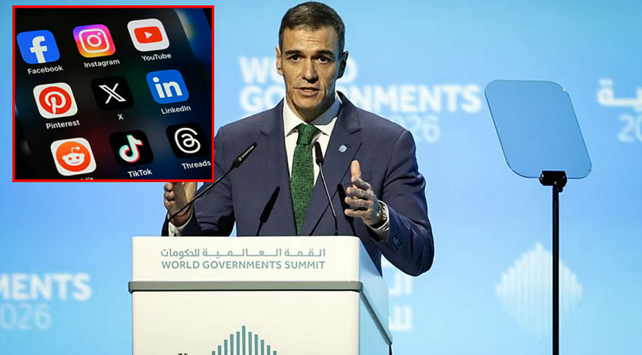 பார்சிலோனா, 04 பிப்ரவரி 2026 : துபாயில் உலக அரசுகளின் உச்சி மாநாடு நேற்று நடந்தது. இதில் ஸ்பெயின் நாட்டின் பிரதமர் பெட்ரோ சாஞ்செஸ் கலந்து கொண்டு பேசினார். அவர் கூறும்போது, ஸ்பெயினில் 16 வயதுக்கு கீழ் உள்ள குழந்தைகள் சமூக ஊடகம் பயன்படுத்த தடை விதிக்க அரசு திட்டமிட்டு வருகிறது.