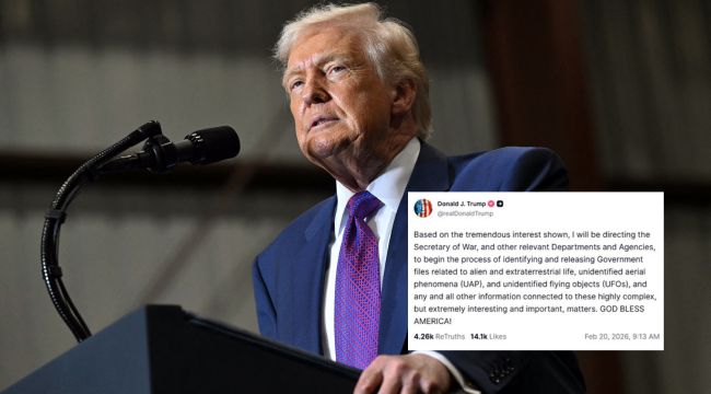 வாஷிங்டன், 20 பிப்ரவரி 2026 : ‘ஏலியன்கள்’ அல்லது வேற்று கிரக வாழ்க்கை, அடையாளம் தெரியாத வான்வழி நிகழ்வுகள் (UAP) மற்றும் அடையாளம் தெரியாத பறக்கும் பொருள்கள் (UFO) தொடர்பான அரசாங்க கோப்புகளை அடையாளம் கண்டு வெளியிடத் தொடங்குமாறு அமெரிக்க ஜனாதிபதி டொனால்ட் டிரம்ப் வியாழக்கிழமை கூட்டாட்சி அமைப்புகளுக்கு உத்தரவிட்டார்.