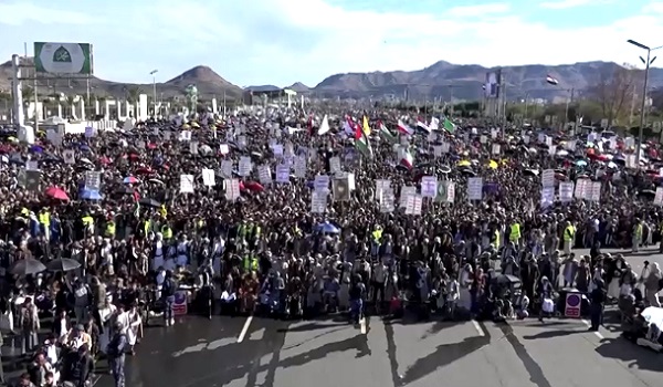 சனா, 29 மார்ச் 2026 : இங்கும் வடக்கு யேமனின் பல்வேறு பிராந்தியங்களிலும் மாபெரும் ஆர்ப்பாட்டங்கள் நடைபெற்றன. இதில் ஈரான், லெபனான் மற்றும் ஈராக் ஆகிய நாடுகளுக்கு ஆதரவு தெரிவித்த பங்கேற்பாளர்களின் எண்ணிக்கை பத்து லட்சம் வரை இருந்ததாக மதிப்பிடப்பட்டுள்ளது.
