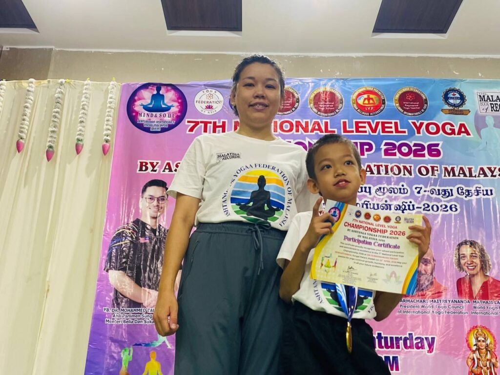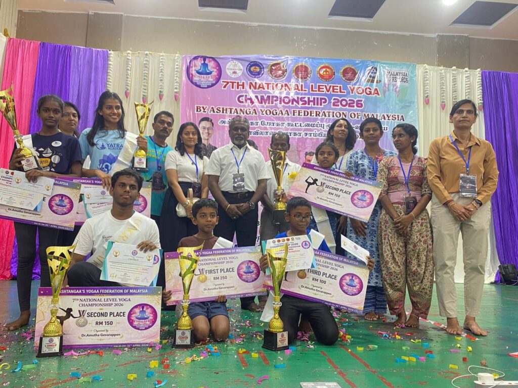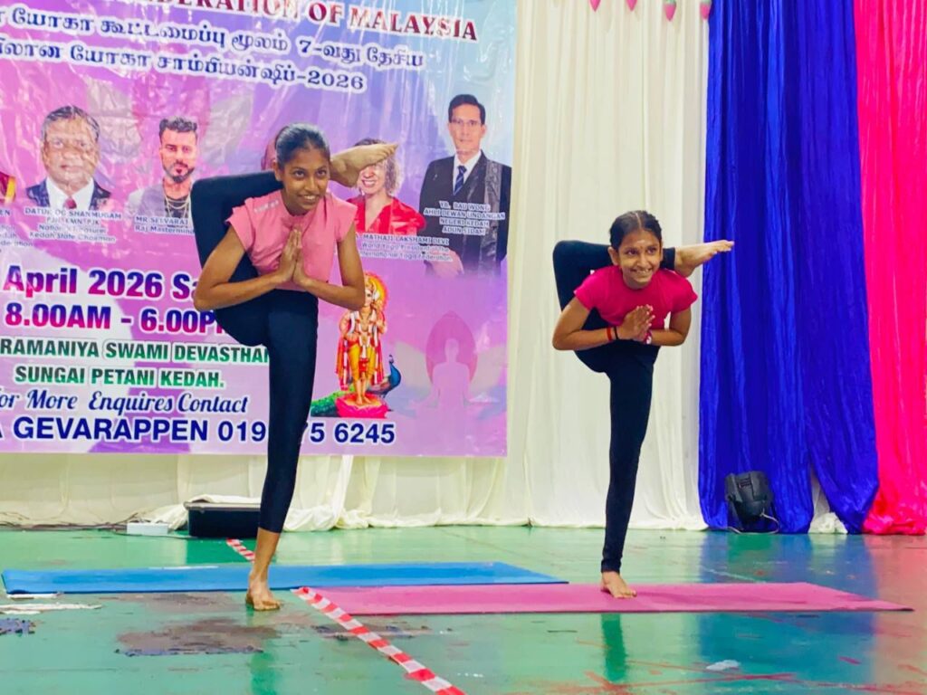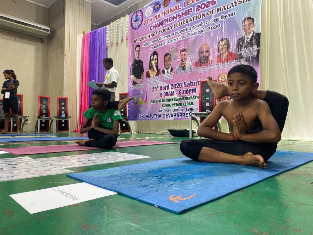 சுங்கை பெட்டாணி, 27 ஏப்ரல் 2026 : கெடா மாநிலம் சுங்கை பெட்டாணியில் உள்ள ஸ்ரீ சுப்பிரமணிய சுவாமி தேவஸ்தானத்தில், டாக்டர் அமுதா கெவரப்பன் தலைமையில் 7வது தேசிய யோகா சாம்பியன்ஷிப் சிறப்பாக நடைபெற்றது. அஷ்டாங்கா யோகா சம்மேளனம் மலேசியா சார்பில் தொடர்ந்து ஏழாவது ஆண்டாக நடைபெற்ற இந்த தேசிய அளவிலான போட்டி, நூற்றுக்கணக்கானோரின் பங்கேற்புடன் சிறப்புற நிறைவடைந்தது.