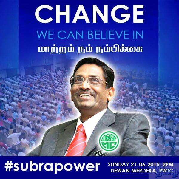 ஜூன் 19, அன்பிற்குரிய ம.இ.கா கிளை தலைவர்களே. எதிர்வரும் ஞாயிற்றுக்கிழமை 21.6.2015 அன்று ம.இ.காவின் நன்மைக்காகவும் அதன் வளர்ச்சியைக் கருத்தில் கொண்டும் ஒரு சந்திப்புக் கூட்டம் நடைபெறவுள்ளது. டத்தோ ஶ்ரீ டாக்டர் சுப்ரமணியம் தலைமையில் இந்த கூட்டம் PWTC அரங்கில் மதியம் 1மணிக்கு ஏற்பாடு செய்யப்பட்டுள்ளது. கட்சியின் விசுவாசமிக்க தலைவர்களான தாங்கள் அனைவரும் மீண்டும் ம.இ.காவை வலுப்படுத்த ஒன்று திரண்டு வாருங்கள் என தாழ்மையுடன் கேட்டுக் கொள்கிறோம்.